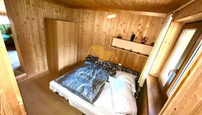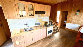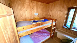 DISPOZÍCIA A VYBAVENIE: Rekreačná chata je priestranná, slnečná a dobre dispozične riešená. Dispozične pozostáva z prízemia, kde sa nachádza veľký apartmán a dvojposteľová izba. Na poschodí je jednolôžková izba s možnosťou prístelky + dve dvojlôžkové rozťahovacie pohovky. Súčasťou chaty je kúpeľňa so sprchovacím kútom, toaleta, kuchynská linka so spotrebičmi.