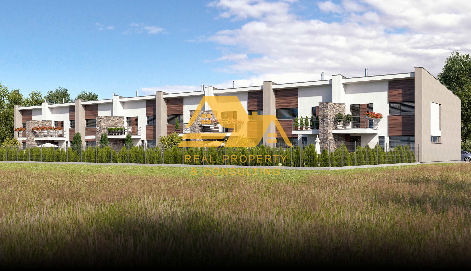 Realitná kancelária Real Property & Consulting s.r.o. ponúka na predaj rodinný dom v novej radovej zástavbe v Nových Zámkoch. Poschodový dom je postavený z tehly, má plastové okná, rovnú strechu. Je napojený na mestskú vodu, elektrinu, kanalizáciu. Každá bytová jednotka je vybavená zdvojenými a odizolovanými múrmi, oddelenými dilatačnou škárou, čo zabezpečuje maximálnu izoláciu.