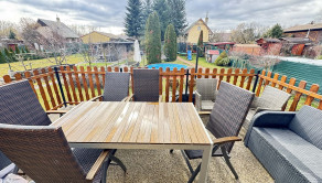 Realitná kancelária Real Property & Consulting s.r.o. vám ponúka na predaj peknú rekreačnú chatu v jednej z najvyhľadávanejších chatových oblastí v Nových Zámkoch – záhradkárska Tekvičné pole. Chata je postavená z tehly, prešla kompletnou rekonštrukciou, je zateplená a vhodná na celoročné bývanie. Chata je napojená na elektrinu, má vlastnú studňu a bio čističku odpadových vôd. Dispozične pozostáva na prízemí z obytnej izby s krbom, kuchynskou linkou, kúpeľňou so sprchovým kútom a toaletou, výstupom na veľkú terasu s posedením. Na poschodí sa nachádza spálňa s výstupom na balkón, súčasťou chaty je aj pivnica. Na pozemku sa nachádza bazén, upravená záhrada, okrasné kríky, pozemok je oplotený. ODPORÚČAM OBHLIADKU!